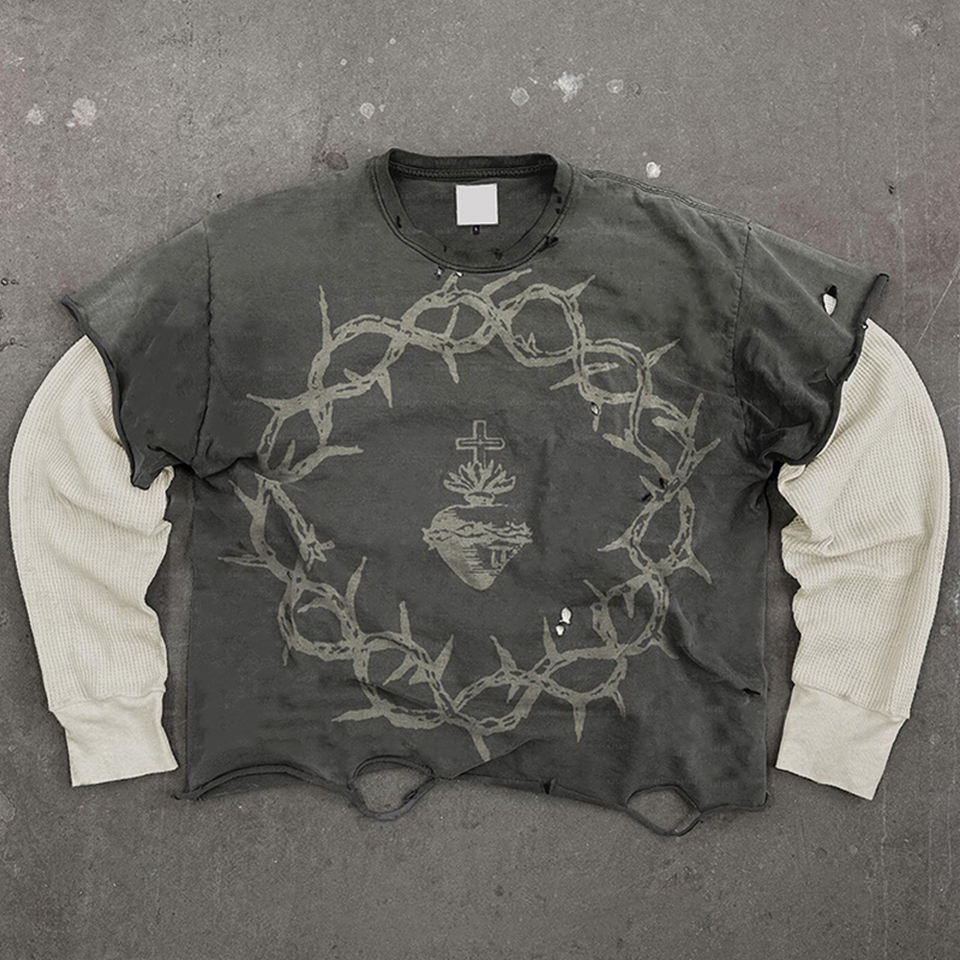 Custom Manufacturers Casual Acid Wash Double Layered Long Double Sleeve T-shirt for Men Washed Long Acid Wash Double Sleeve