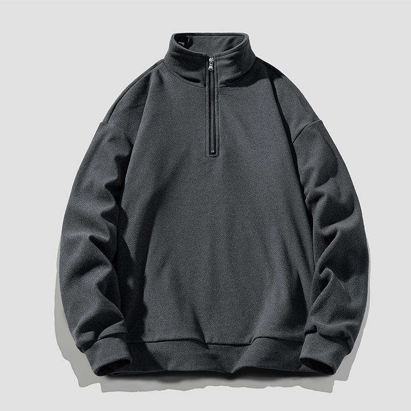 Custom Front Logo Printed Knitted High Street Casual Streetwear Men Winter Warm Soft Polos Quarter Zipper Sweatshirts
