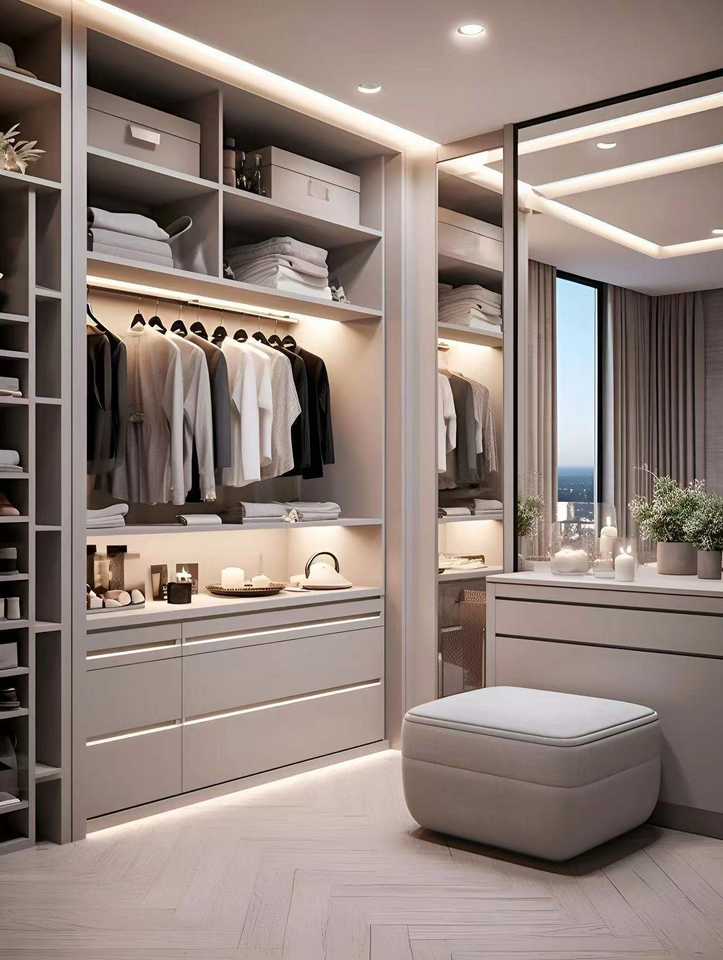 Custom Master Room Elegant Luxury Walk in Closet Opening Shelf Wardrobe