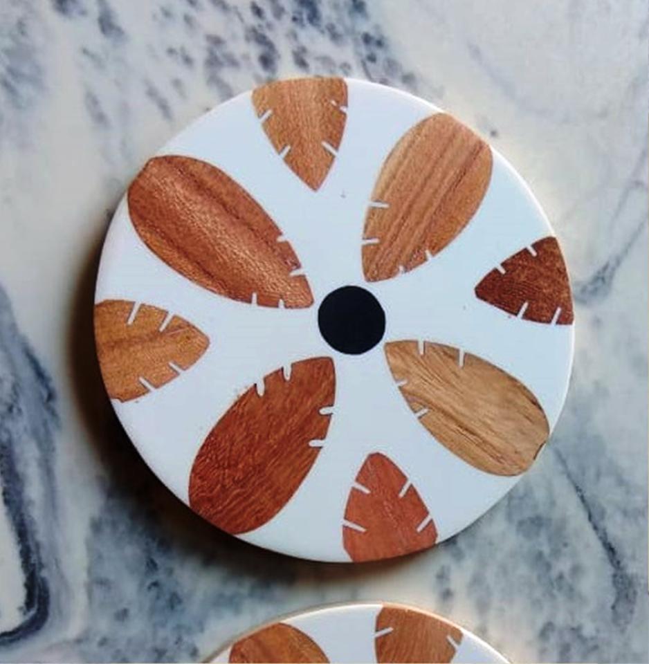 Product name:Bone And Brass Inlay Wood Coaster