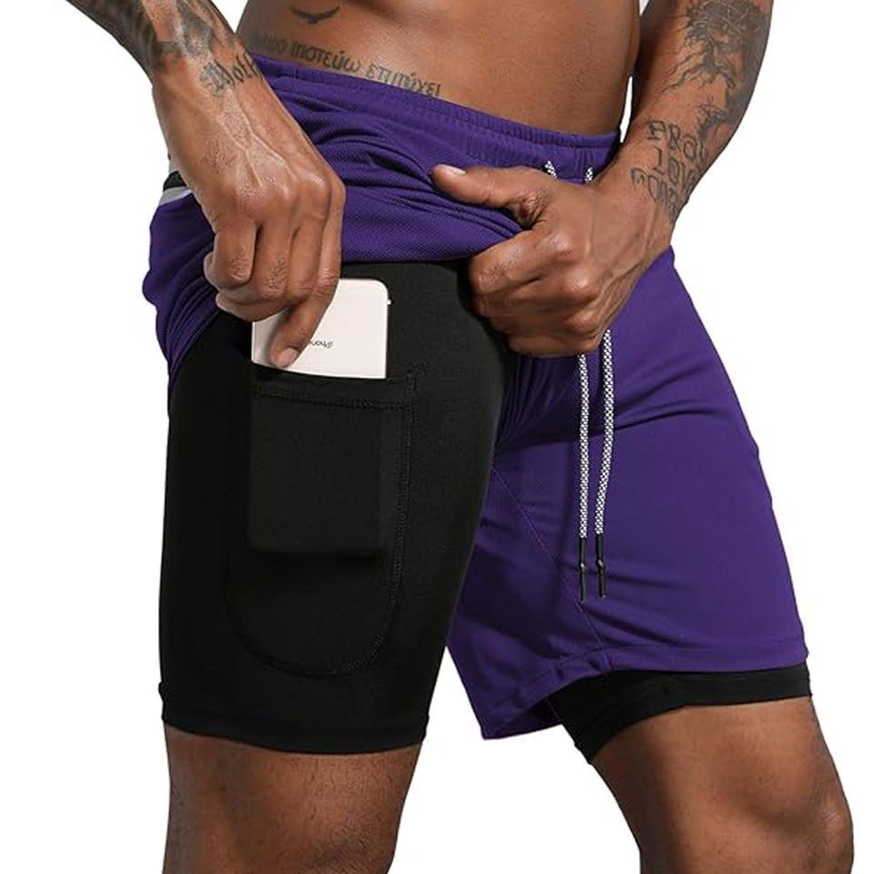 Custom Men 2 In 1 Gym Shorts Compression Liner Running Workout Shorts Phone Pocket Wholesale Supplier OEM