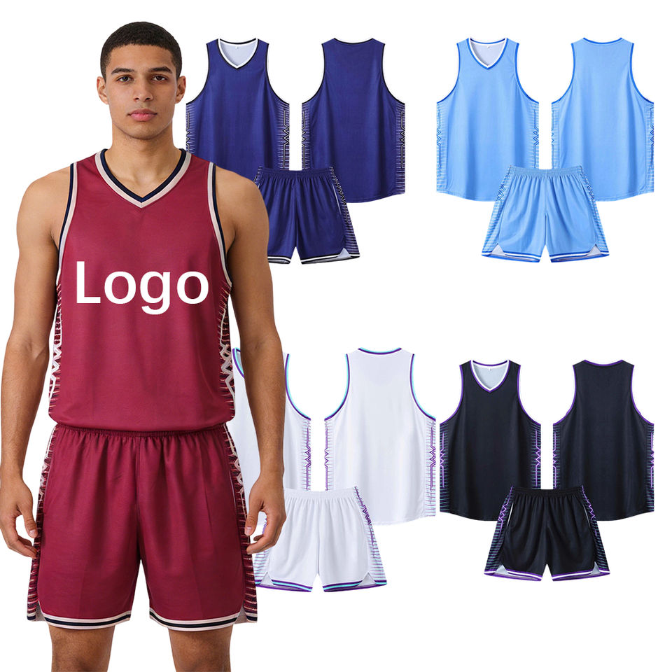 Custom Men Basketball Uniform Set Polyester Quick Dry Breathable Jersey Shorts Heat Transfer Print OEM Bulk Wholesale
