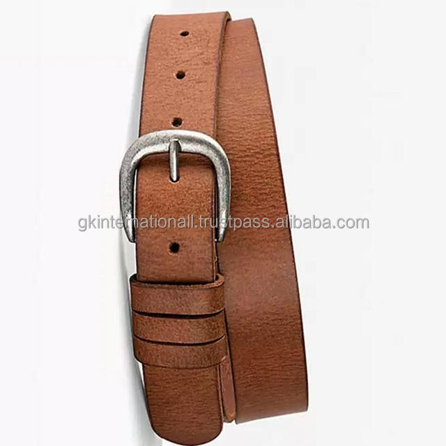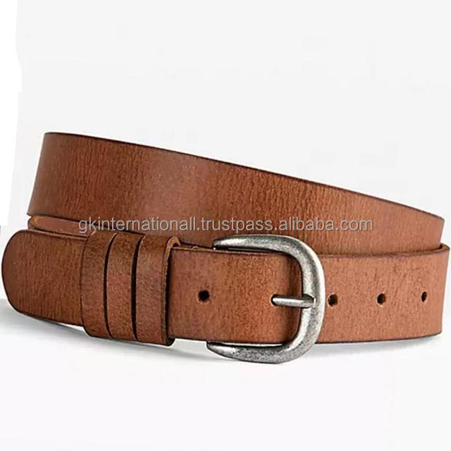 Custom Men Classic Casual Brown Black Genuine Leather Belts for Jeans Solid Antique Silver Brass Pin Buckle Belt for Unisex