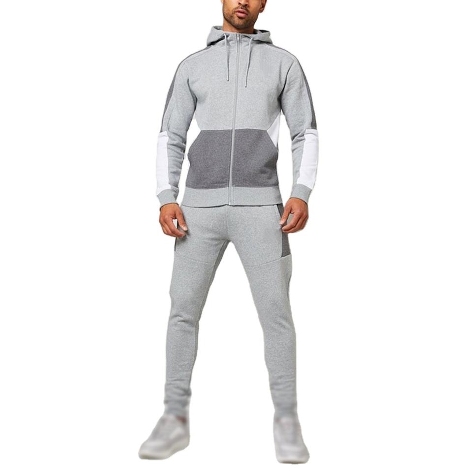 Custom Men Cotton Sportswear | Full Length Zip Hoodie Side Pockets | Solid Anti-Bacterial Breathable Training Fitness Set