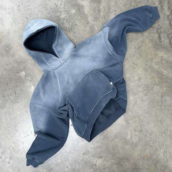 Custom Unisex Distressed Acid Washed Zipper Hoodie Heavyweight Organic Cotton French Terry Oversized Drop Shoulder Anti-Pilling