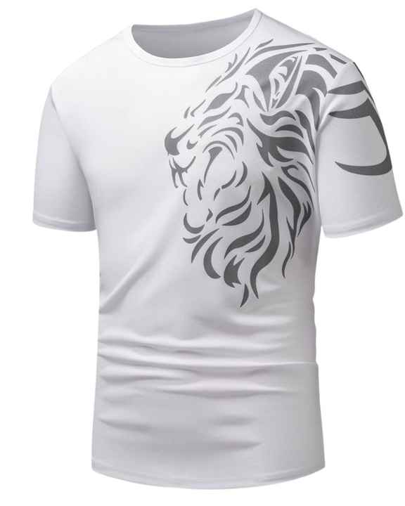 Custom Men Gray Gold Lion Print Polyester TShirt Athletic Fit Short Sleeve Breathable Gym Sportswear Casual Tee Training Apparel