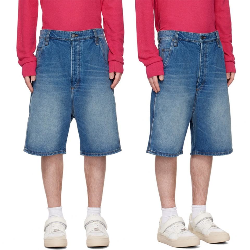 Custom Men Jean Shorts Blue Non-Stretchy High Rise Relaxed Fit Denim Shorts