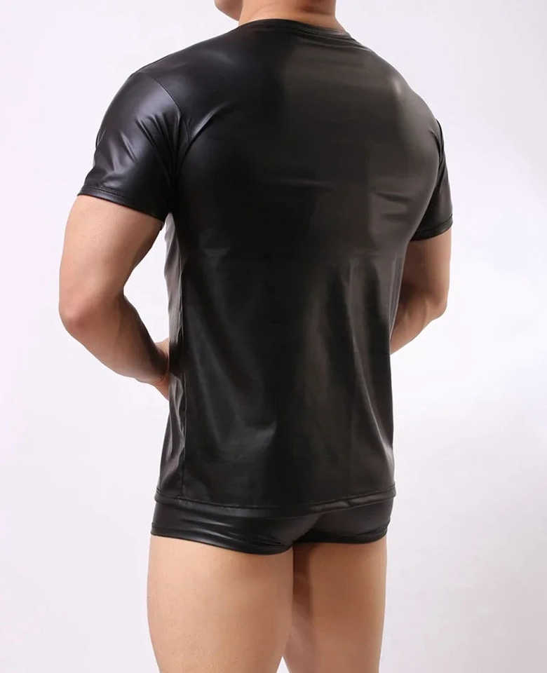 Custom Men Leather Look Performance T Shirt Wholesale Short Sleeve Crew Neck Stretch Fabric Private Label Manufacturer