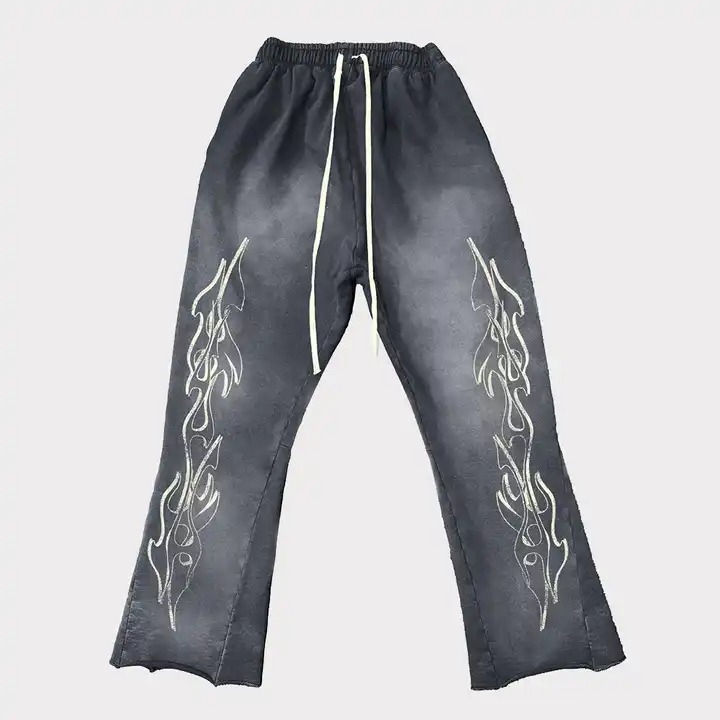 Custom Men Loose Stacked Pants Solid Color Joggers Straight Sweat Pants Bootcut Flared Sweatpants With Logo Puff Print for Man