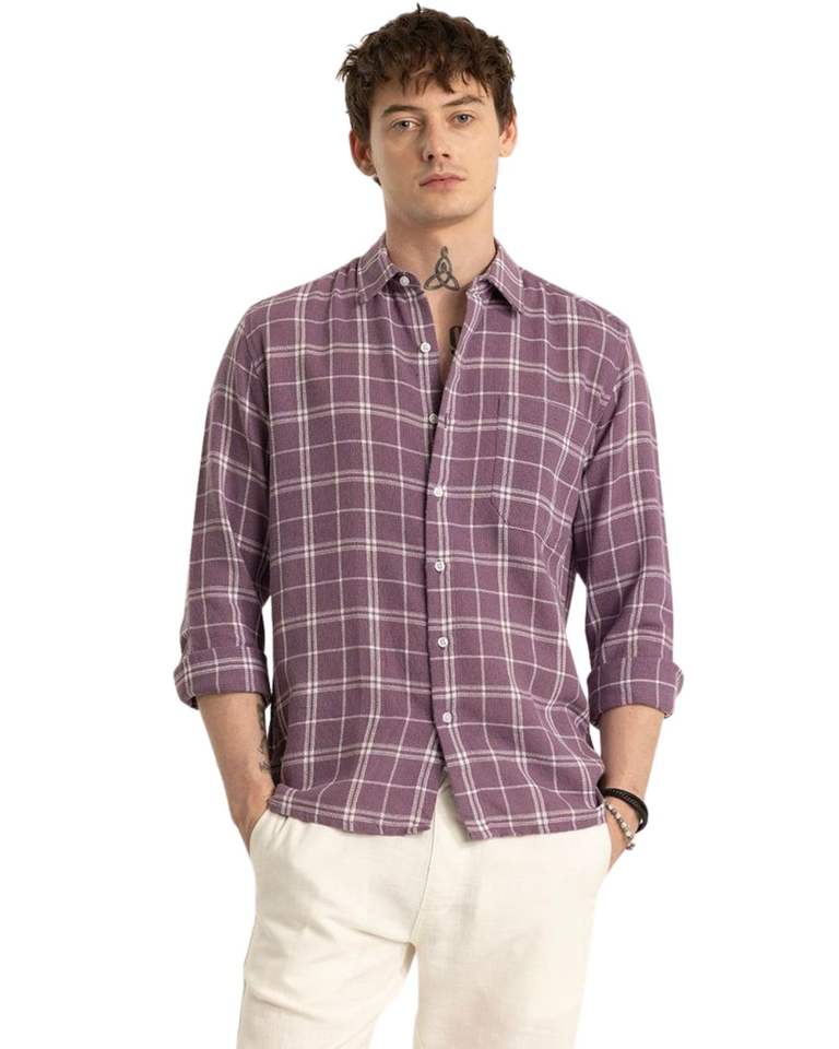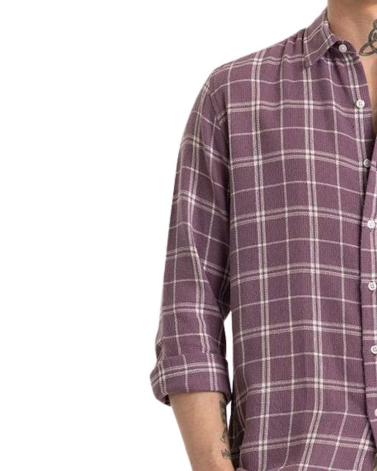 Custom Men Mauve Check Casual Shirt Cotton Polyester Long Sleeve Button Down Plaid Shirt For Wholesale OEM Manufacturing Export