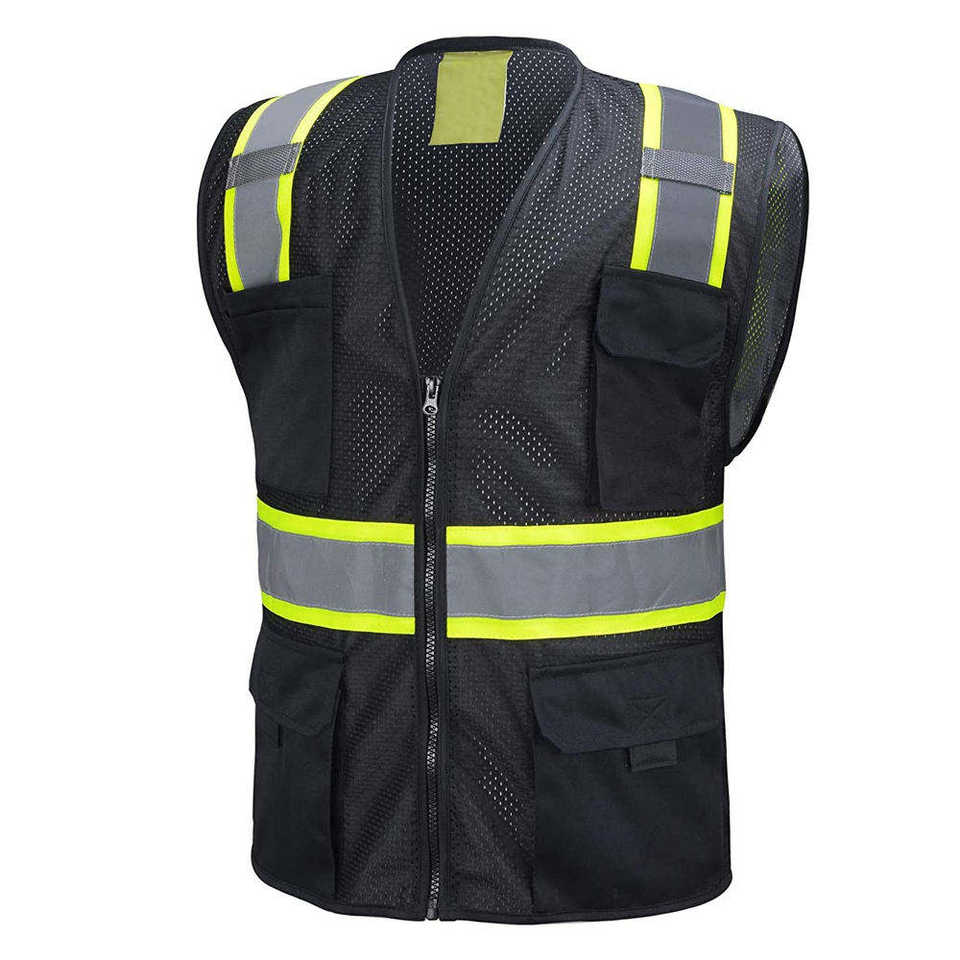Custom Unisex Mesh Hi Vis Reflective Vest Jacket Workwear Shirt Construction Clothing Safety Work Pockets Polyester
