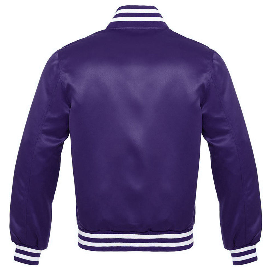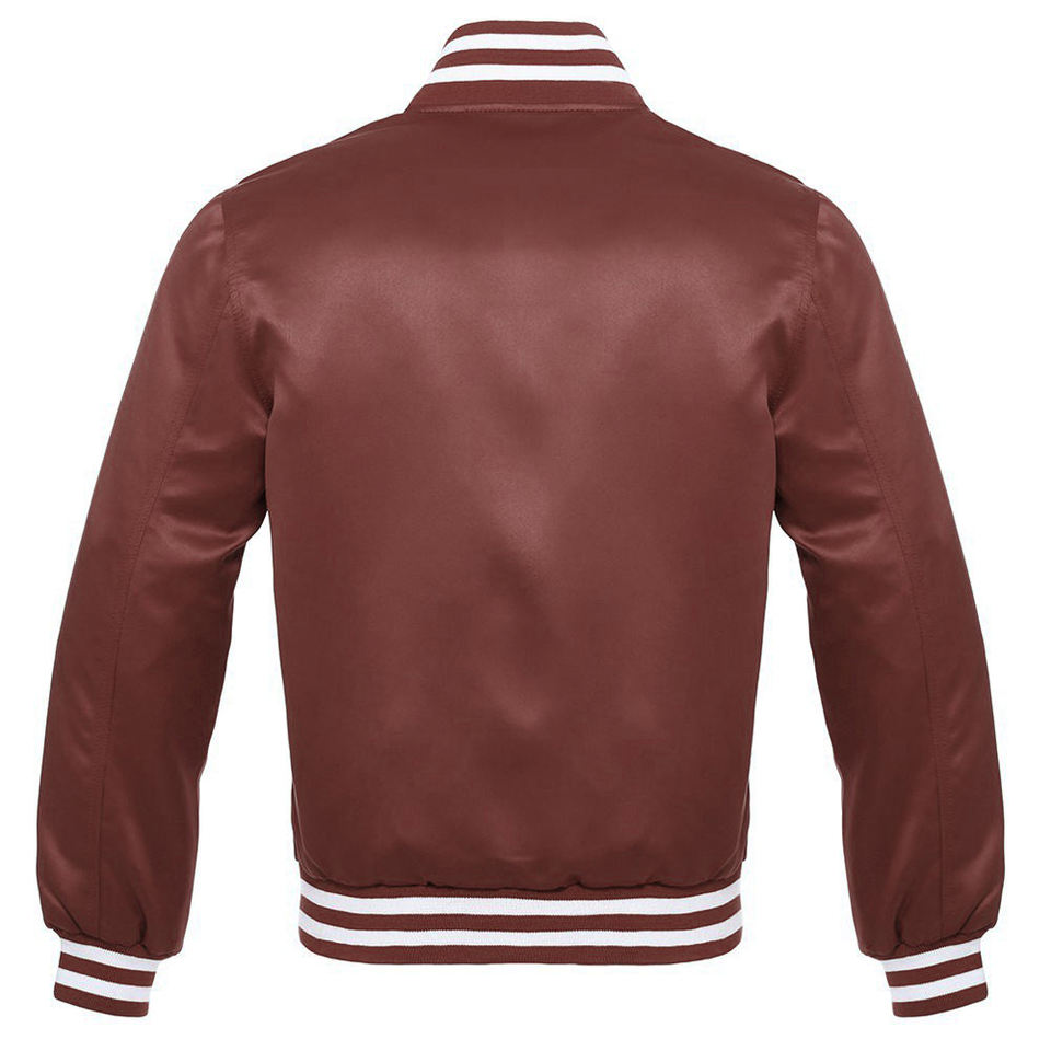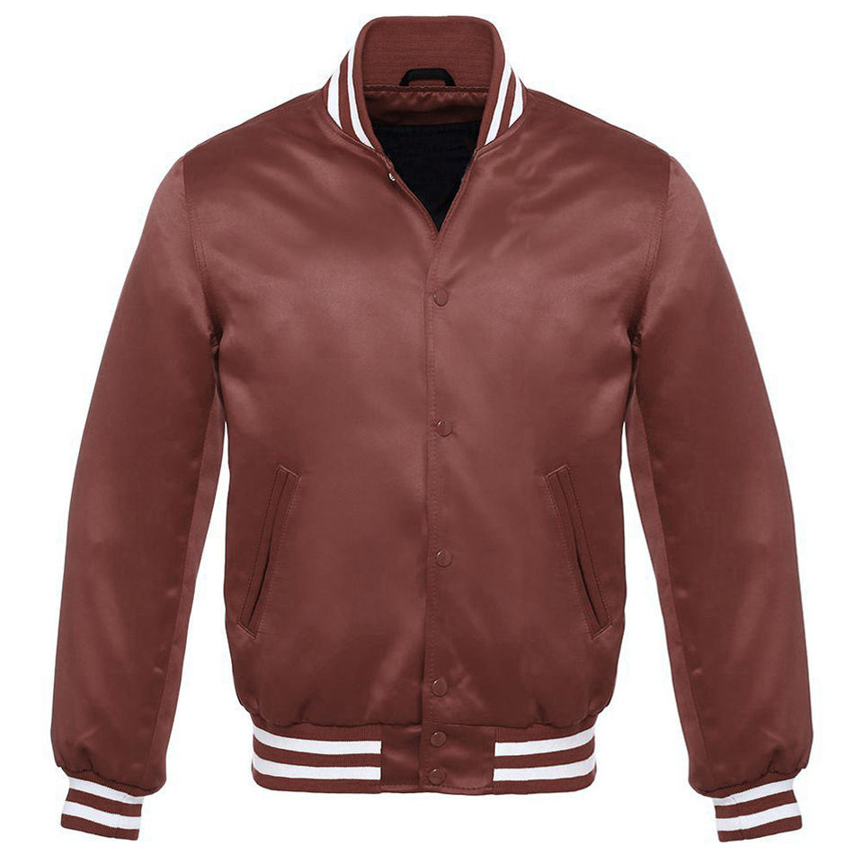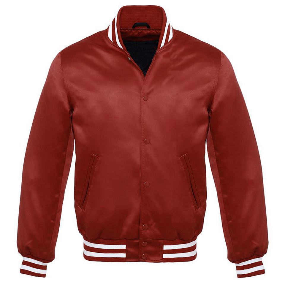 Custom Men Multi Color Satin Varsity Jacket Classic Baseball Bomber Jacket Snap Button Shiny Silk Letterman Jacket With Lining