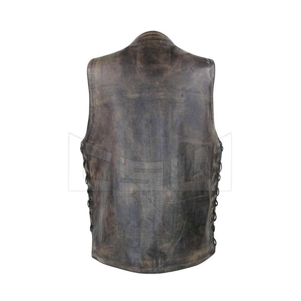 Custom Men Multi Pocket Leather Vest High Quality Custom Logo Men's Leather Vest faded Men Leather Vest