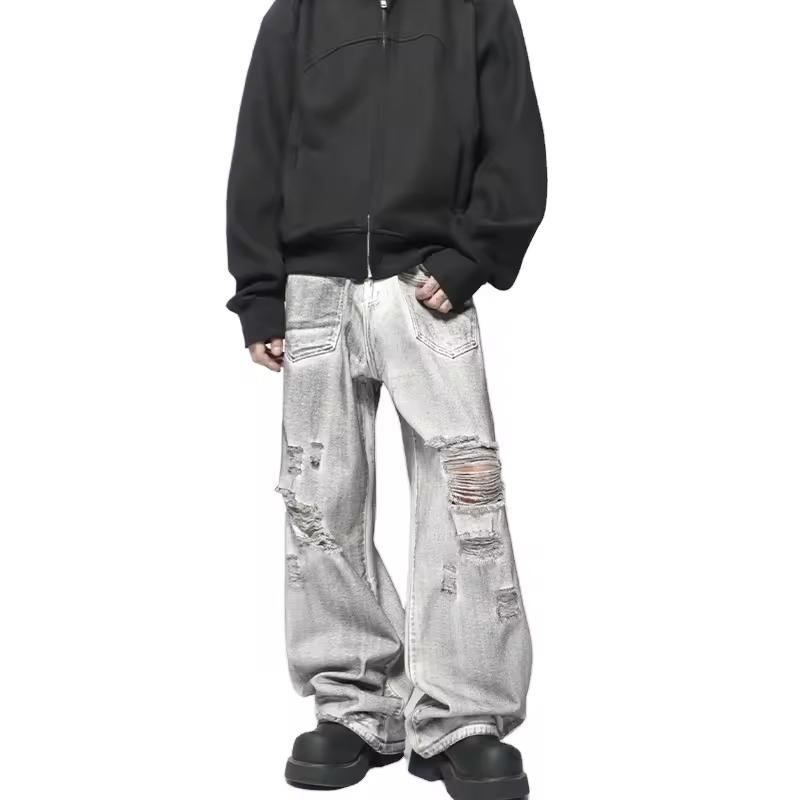 Custom Men Ripped Jeans Distressed Streetwear Slim Fit Trendy Soft Denim Comfortable Fit Bulk Orders Factory Price