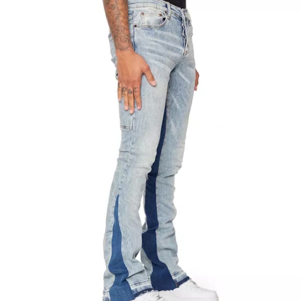 Custom Men Stacked Jeans Patchwork Contrast Flared Pants Slim Fit Wide Leg Jeans Trousers