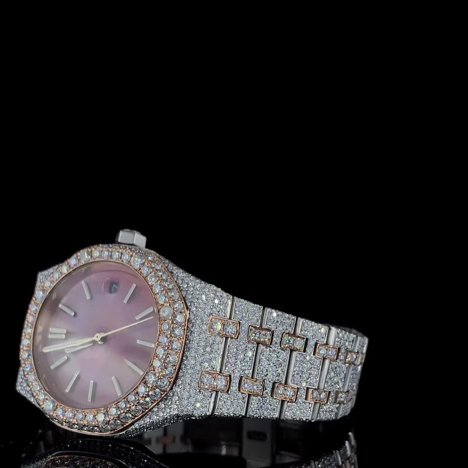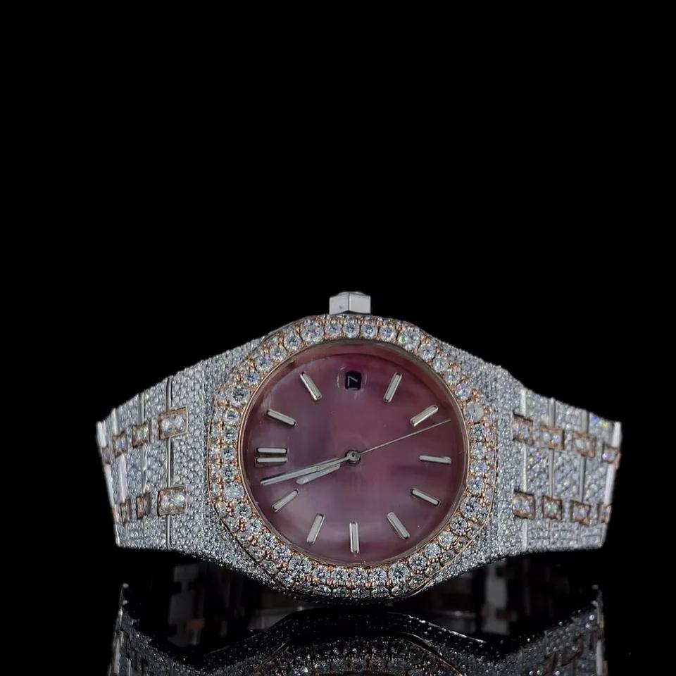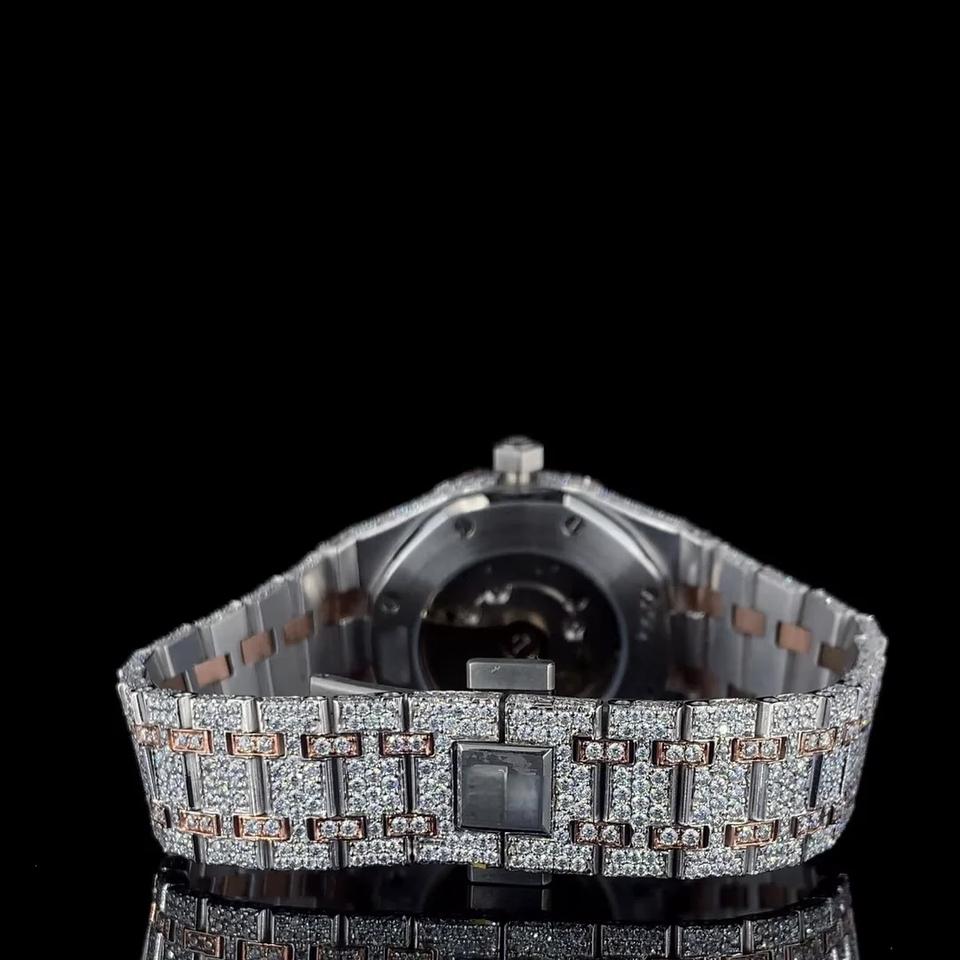 Custom Men Street Bling Iced Out Moissanite Diamond Quartz Movement Stainless Steel Fashion Watch Antique Business Glass Dial