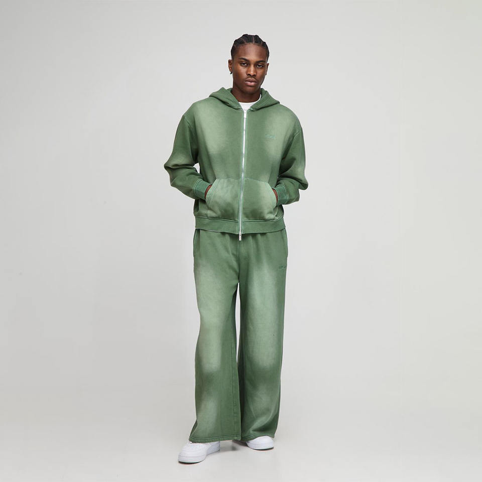 Custom Men Sun Fade Custom Logo Thick Fleece Hoodie Set Vintage Acid Washed Sweatpants Dropped Shoulder Hoodies Suit Sweatsuit