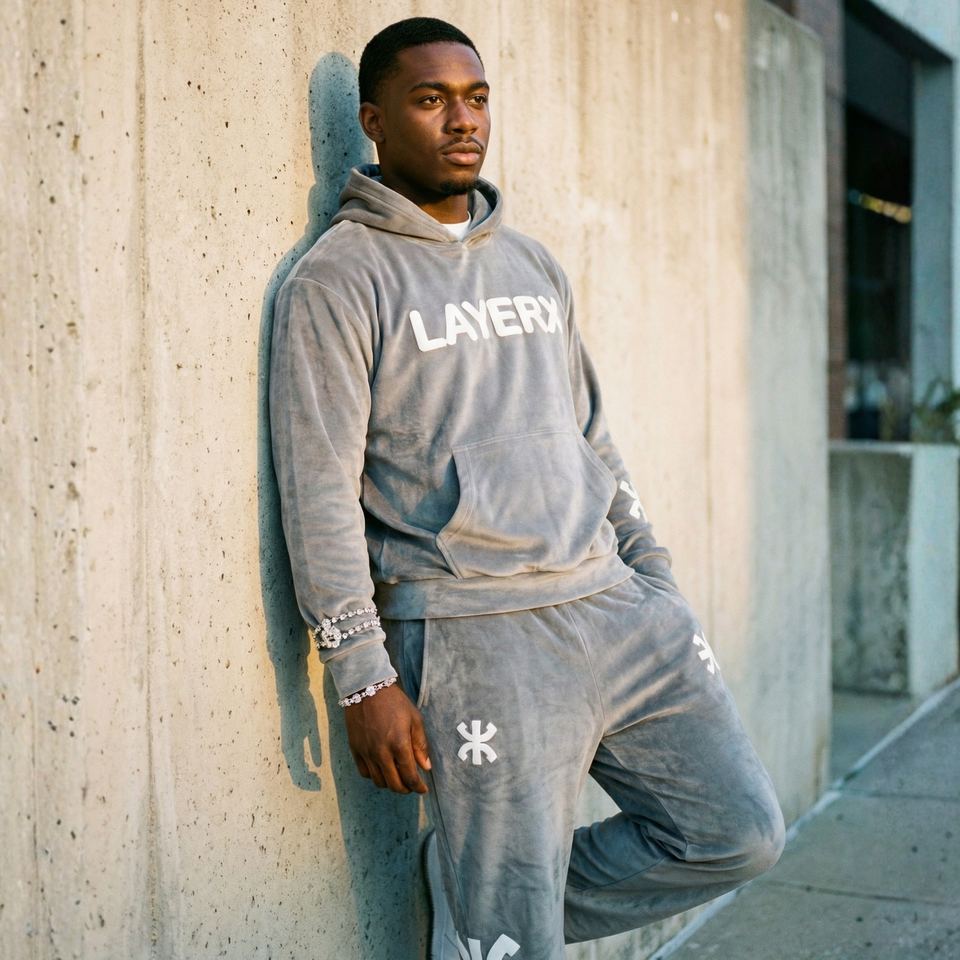 Custom Men Tracksuit Velour Heavyweight Acid Wash Solid for Rhinestone Hoodie Regular Fit Pants Streetwear Wholesale