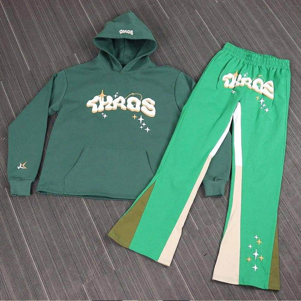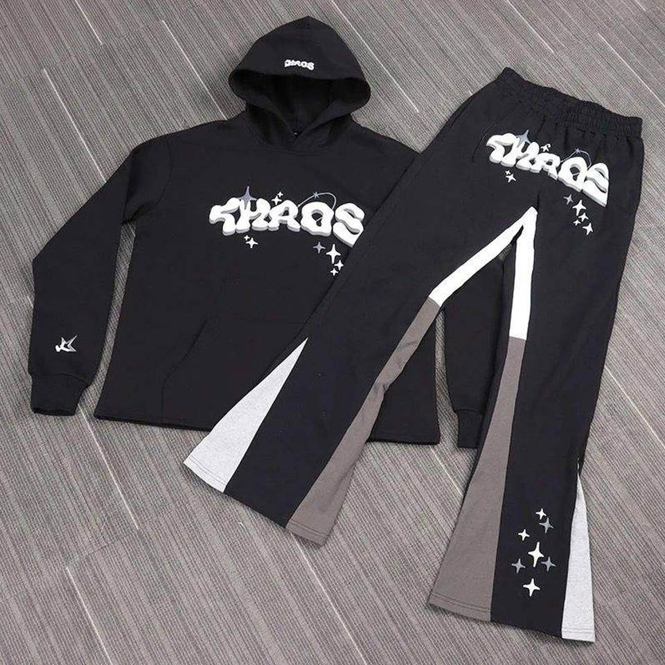Custom Men Winter High Quality Tracksuit Thick Fleece 100% Cotton Two-Piece Print Hoodie & Flare Sweatpants Joggers Set