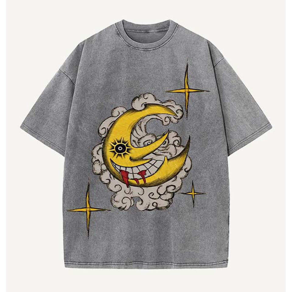 Product Name:Evil-moon-sun-star-cloud-faux-decal-print-round-neck-t-shirt