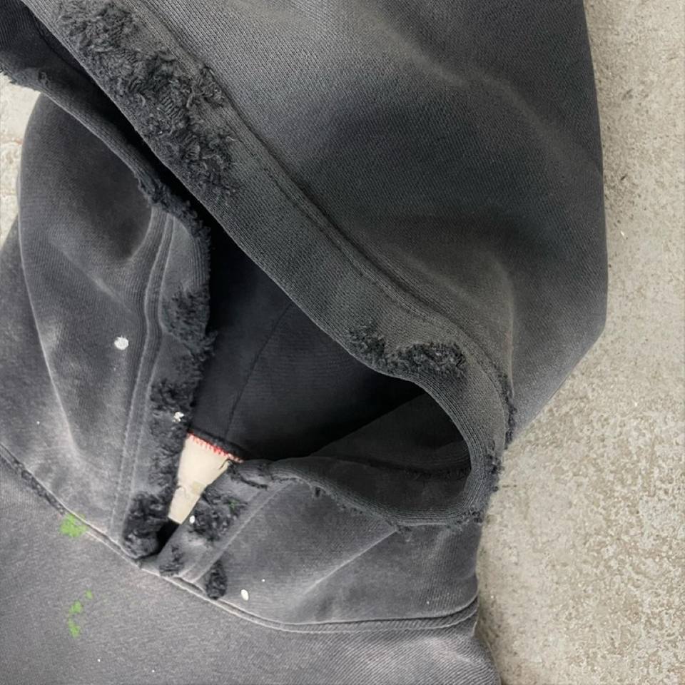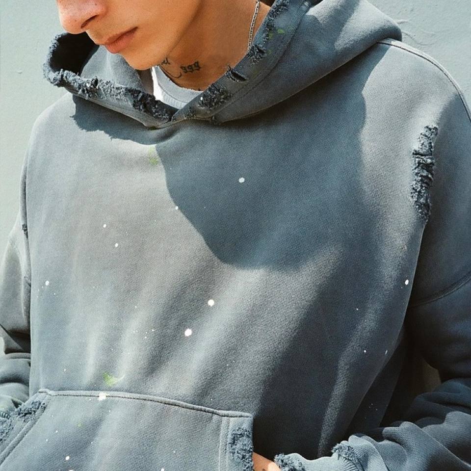 Custom Men's 100% Cotton Pullover Oversized Vintage Distressed Hoodie Sun-Faded Acid Wash Style Ripped Hoodie & Sweatshirts