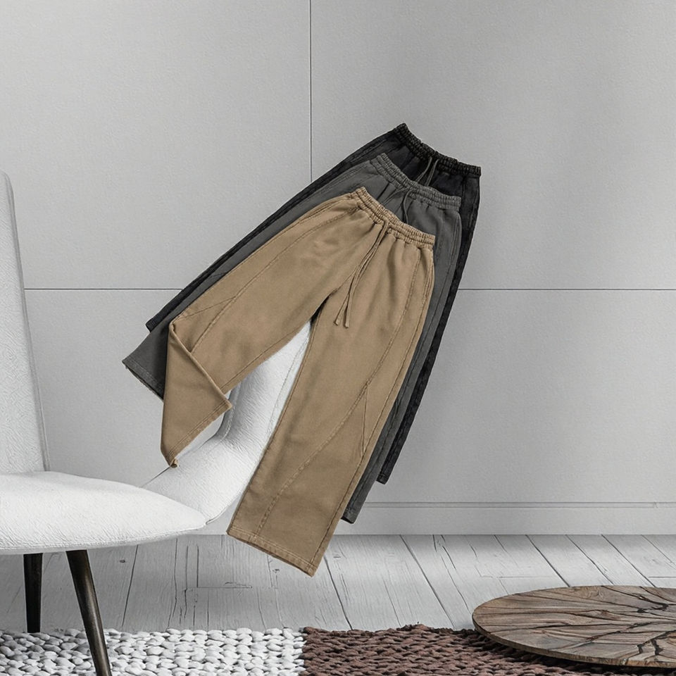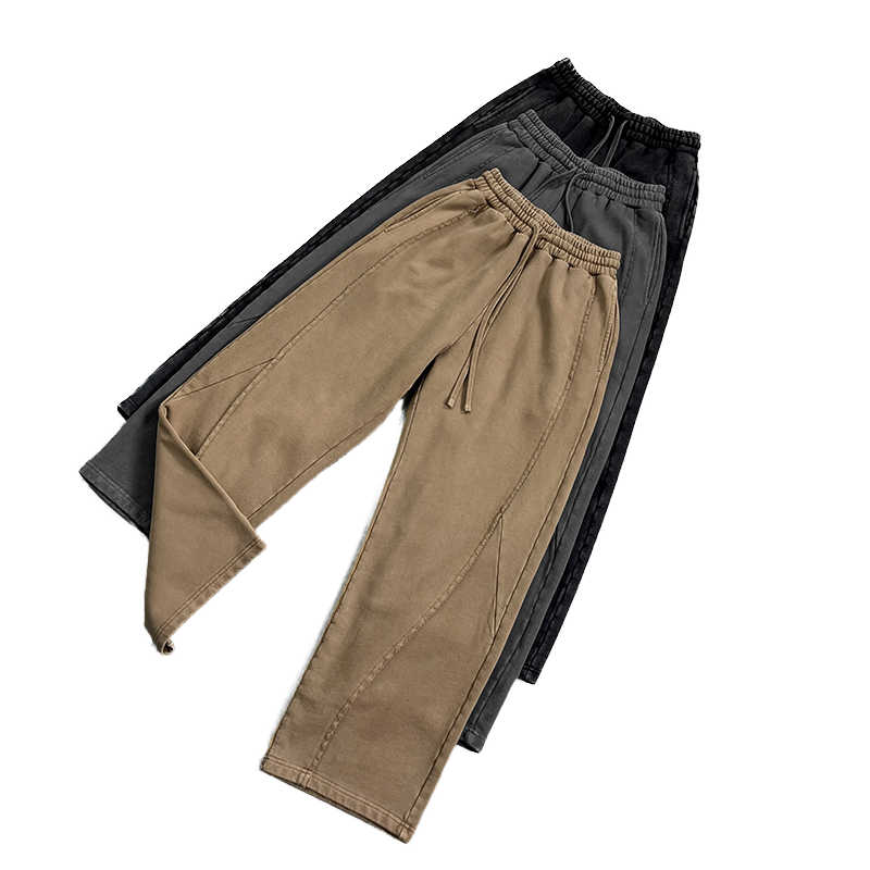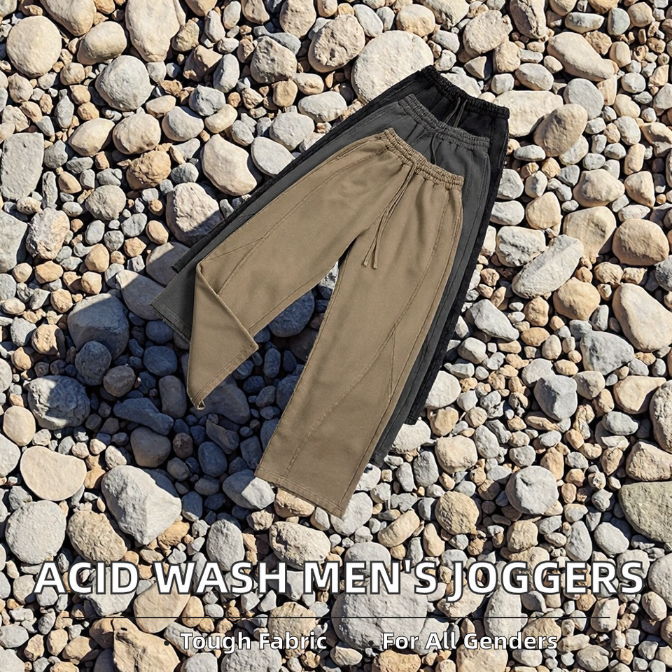 Custom Men's Acid Wash Blank Cotton Joggers Oversized Baggy Wide Leg Track Sweatpants Straight Pattern Mid Flat Heavyweight
