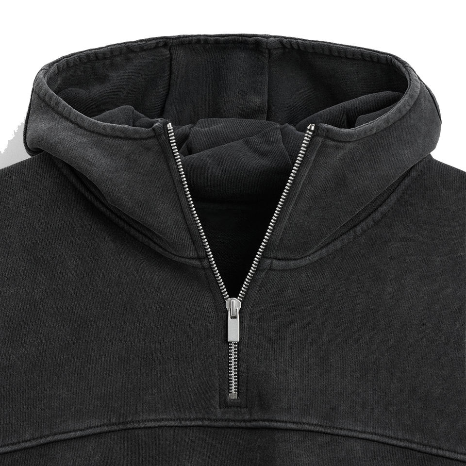 Custom Men's Acid Washed 460gsm Cotton Pullover Black Hoodie Streetwear Printing Half Zip Dropped Shoulders Hoodies