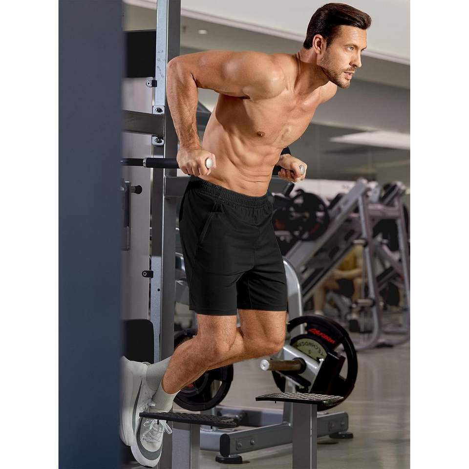Custom Men's Athletic Shorts 4 Way Stretch Zipper Pockets 7\" Lightweight Gym & Sports Workout XS Size