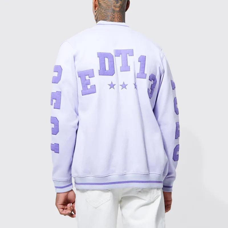 Custom Men's Baseball College Wool Chenille Graffiti Embroidery Jackets High Quality Purple Canvas Plus Size
