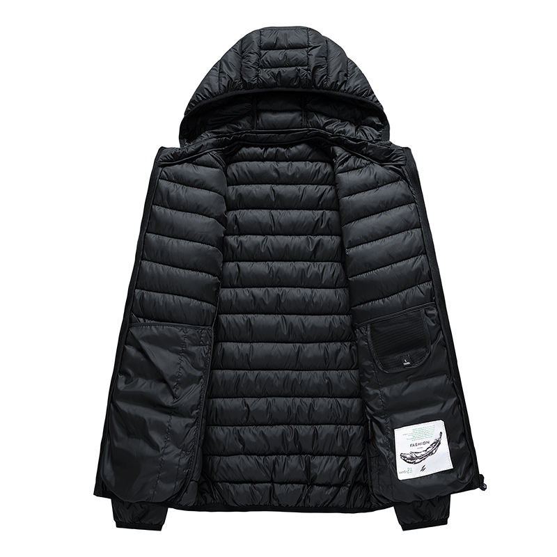 Custom Men's Black Parka Coat Jacket Winter Thick Duck Down with Stand Fur Collar Embroidered XS Size Zipper Closure