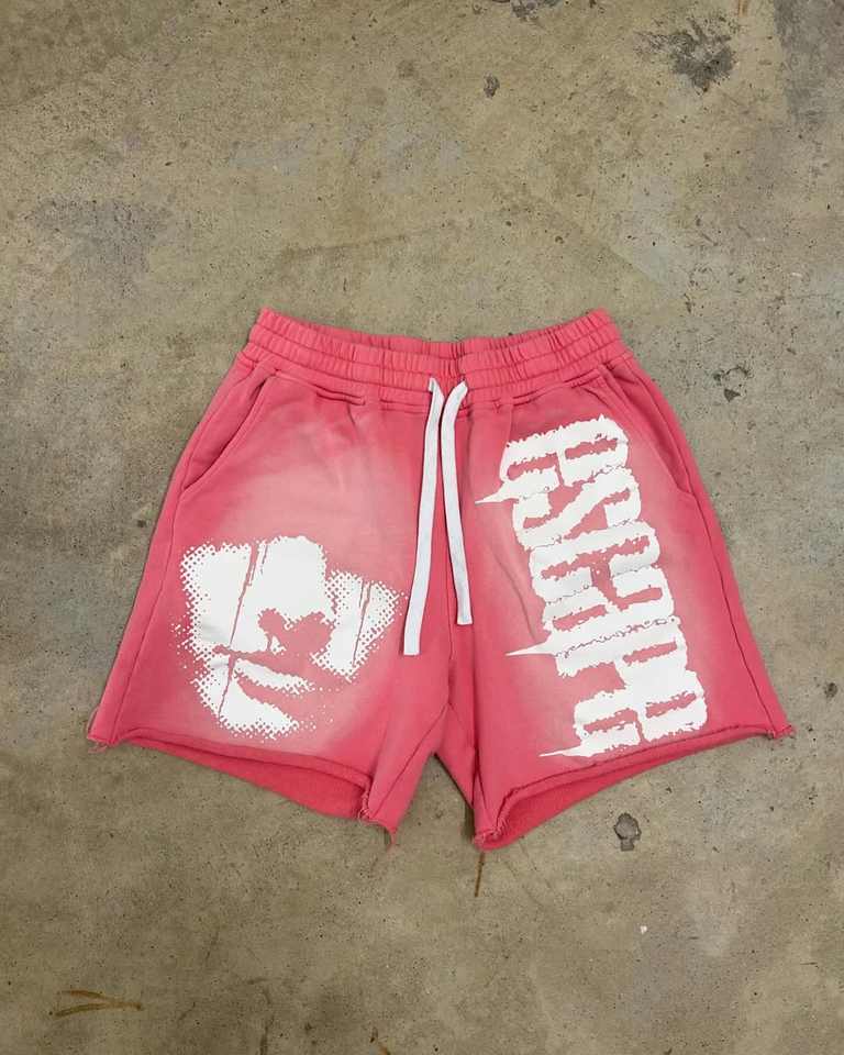 Custom Men's Casual Board Shorts Vintage Design Heavy Cotton Woolen Screen Printed Lace Elastic Waist Quick Dry Breathable