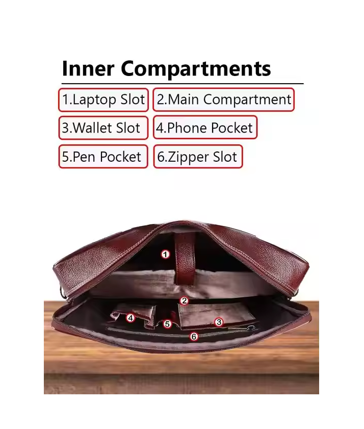 Custom Men's Brown Pure Leather Messenger Bag Modern Style with Adjustable Straps RFID Waterproof Features Multiple Compartments