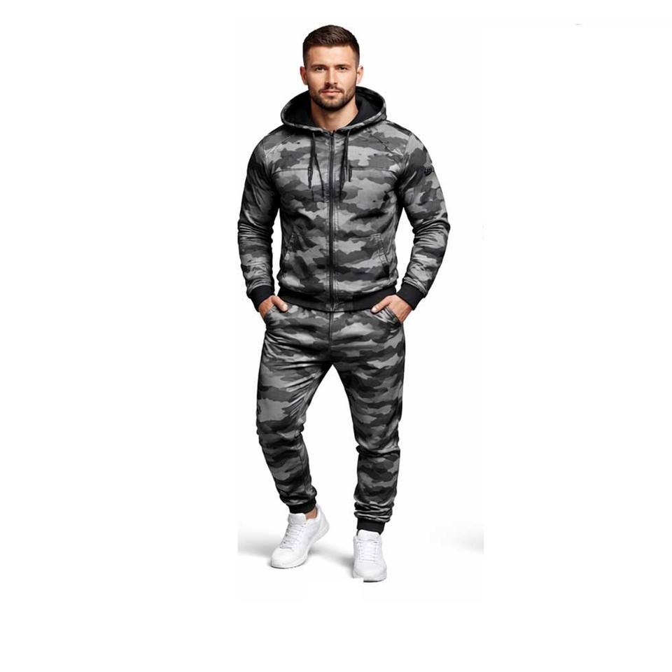 Custom Men's Camo Winter Casual Tracksuit 100% Cotton High Quality Latest Design Full Zip Hoodie