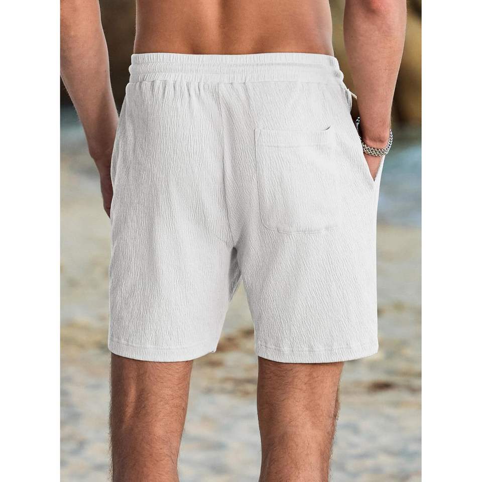 Custom Men's Casual 7\" Cotton Elastic Waist Drawstring Summer Beach Shorts with Pockets Board Shorts & Swim Trunks