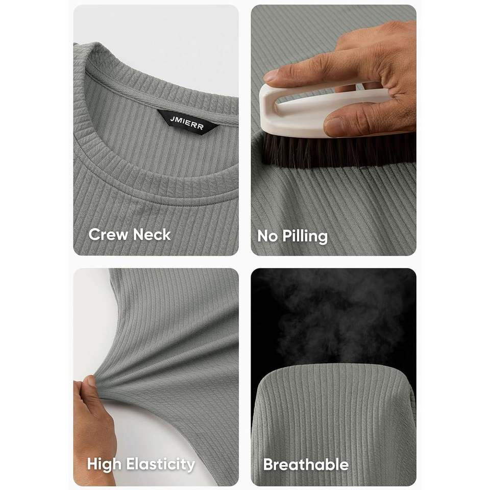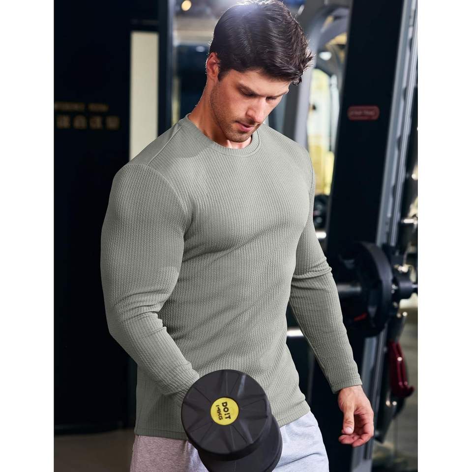 Custom Men's Casual Crewneck Knitted Longline Textured T-Shirts Long Sleeve Muscle Gym Workout Tee Shirts