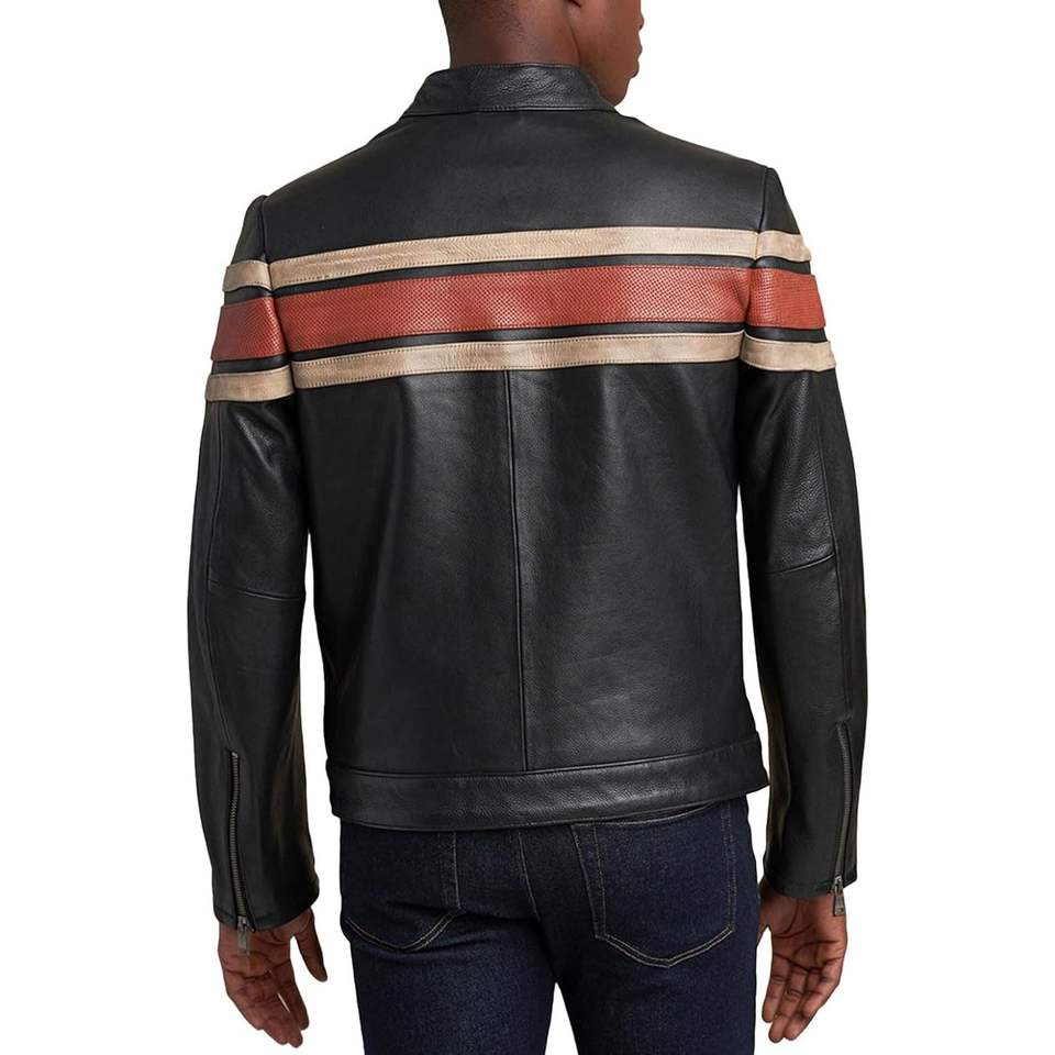 Custom Men's Classic Vintage Cafe Racer Leather Jacket Full Sleeve Color Blocked Windproof Motorcycle Wear