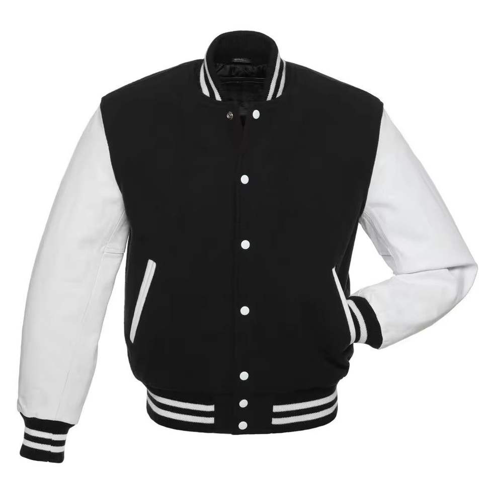 Custom Men's College Varsity Jacket Wool Body Leather Sleeves with Embroidered Chenille Patches Canvas Letterman Baseball Jacket