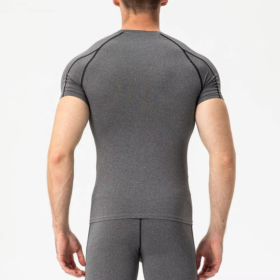 Custom Men's Compression Long Sleeve O-Neck T-shirt Front Custom Base Layer Corduroy Fabric Spandex/Polyester Breathable