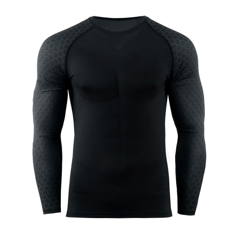Custom Men's Compression Rash Guard Shirt Full Sleeve Quick Dry Breathable Eco-Friendly Spandex/Polyester Plain Dyed 120g Front