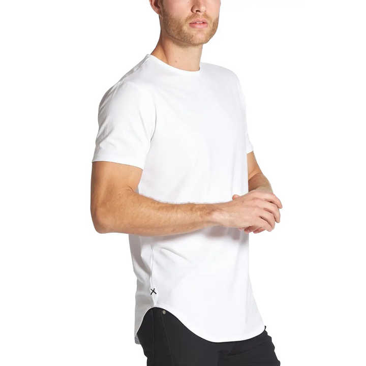 Custom Men's Crewneck Curved Hem Trim Fit Elongated T-Shirt T-shirt for men DDP Shipping