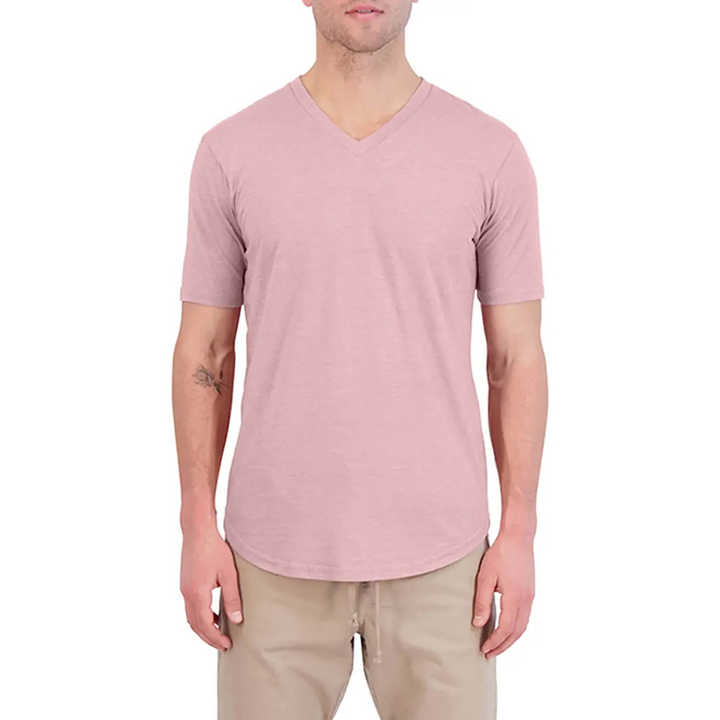 Custom Men's Curved Hem Soft Polyester Cotton Tri Rayon Blend T Shirt Personnalised Tri Material Blend V-Neck T-shirt for men