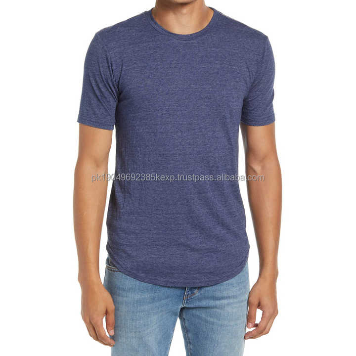 Custom Men's Curved Hem T-shirt Wholesale 50% Polyester 38% Cotton 12% Rayon Soft Tri-Blend Tee Shirt Scallop Tri Blend T Shirt