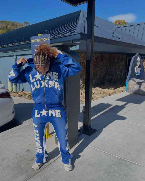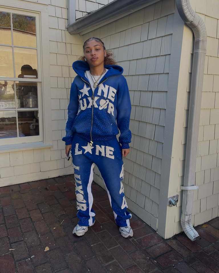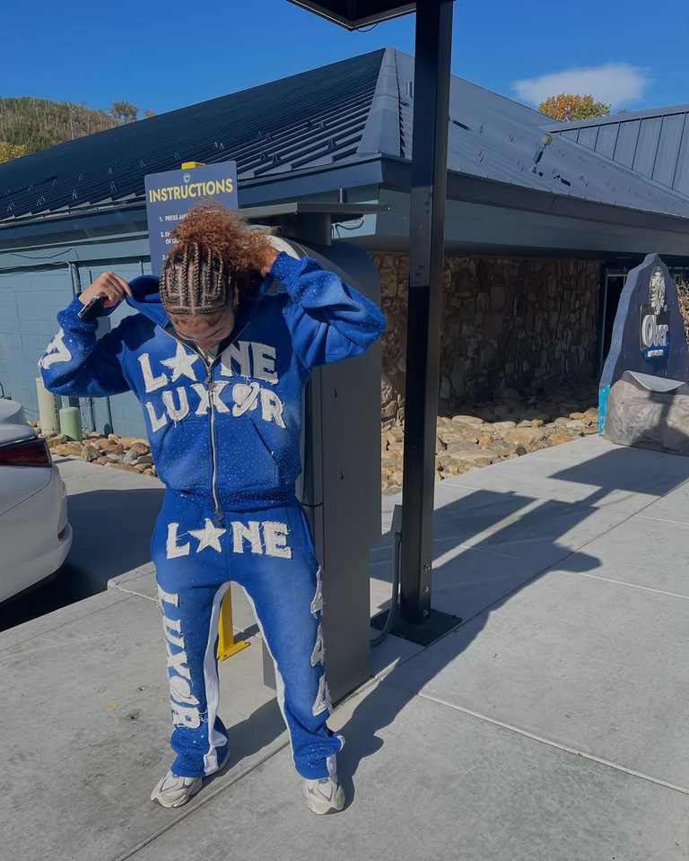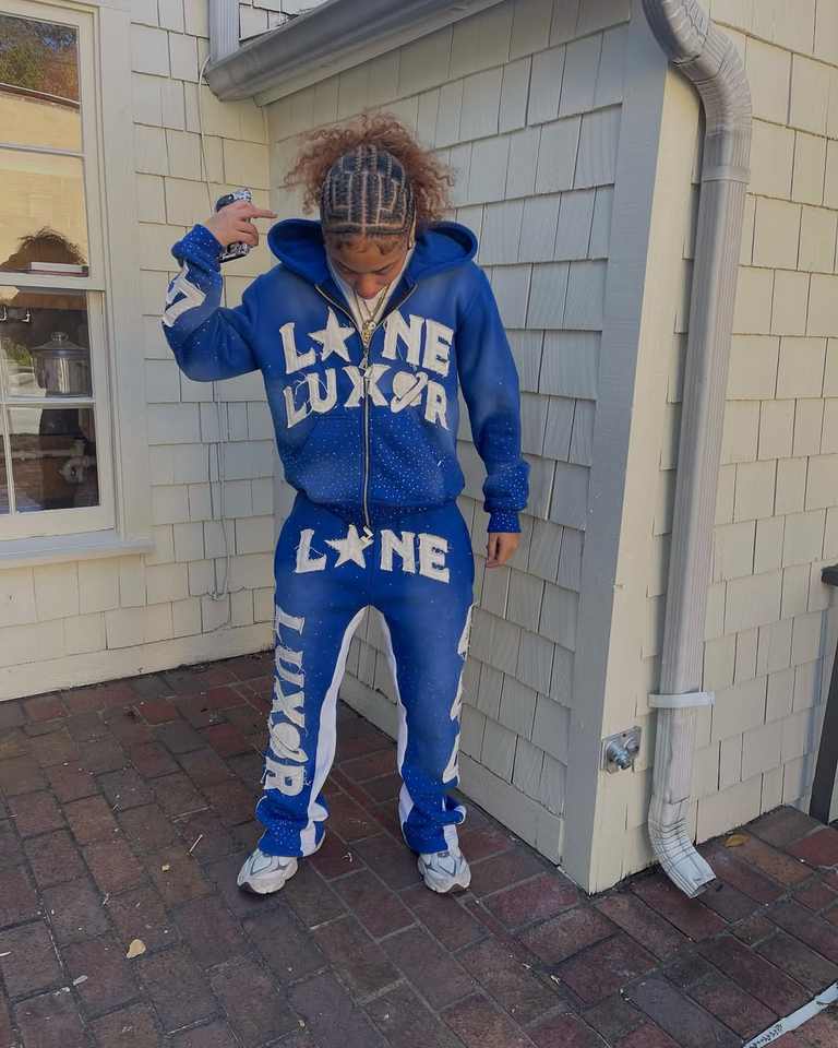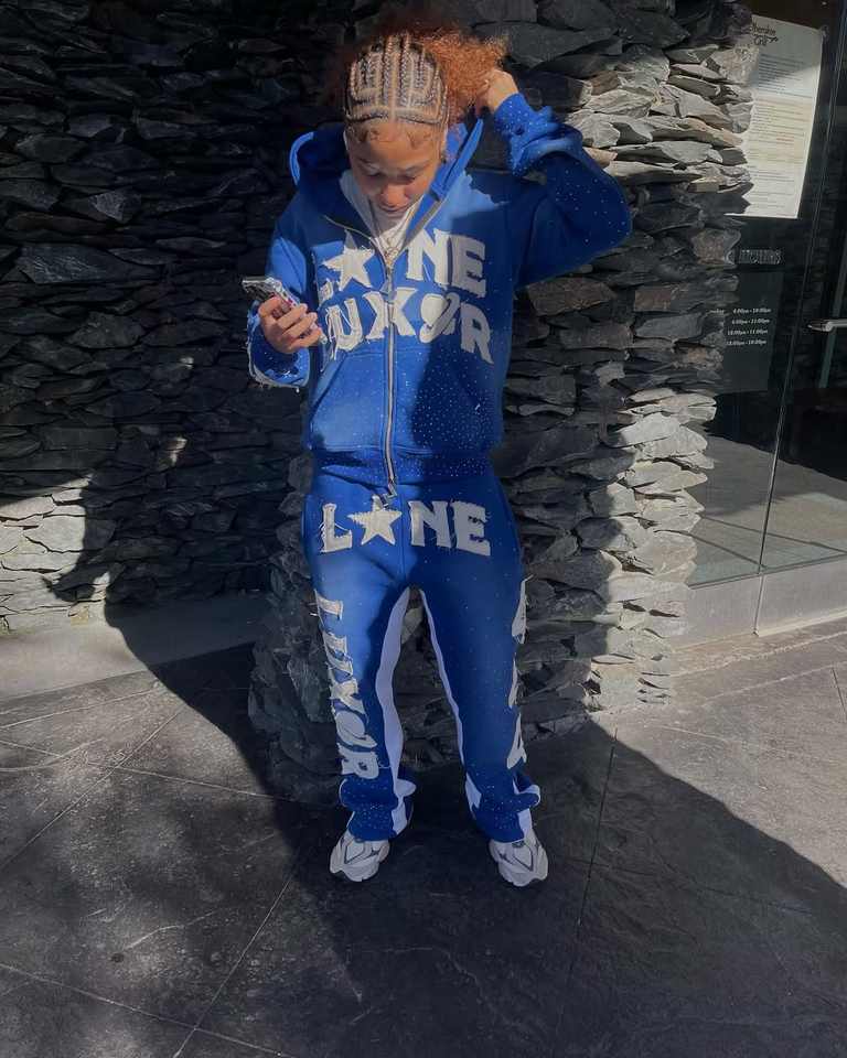 Rhinestone Distress Patch Custom Zip up Tracksuit Flared Sweatsuit Two Pieces Hoodies and Sweatpants Set Rhinestone Tracksuits