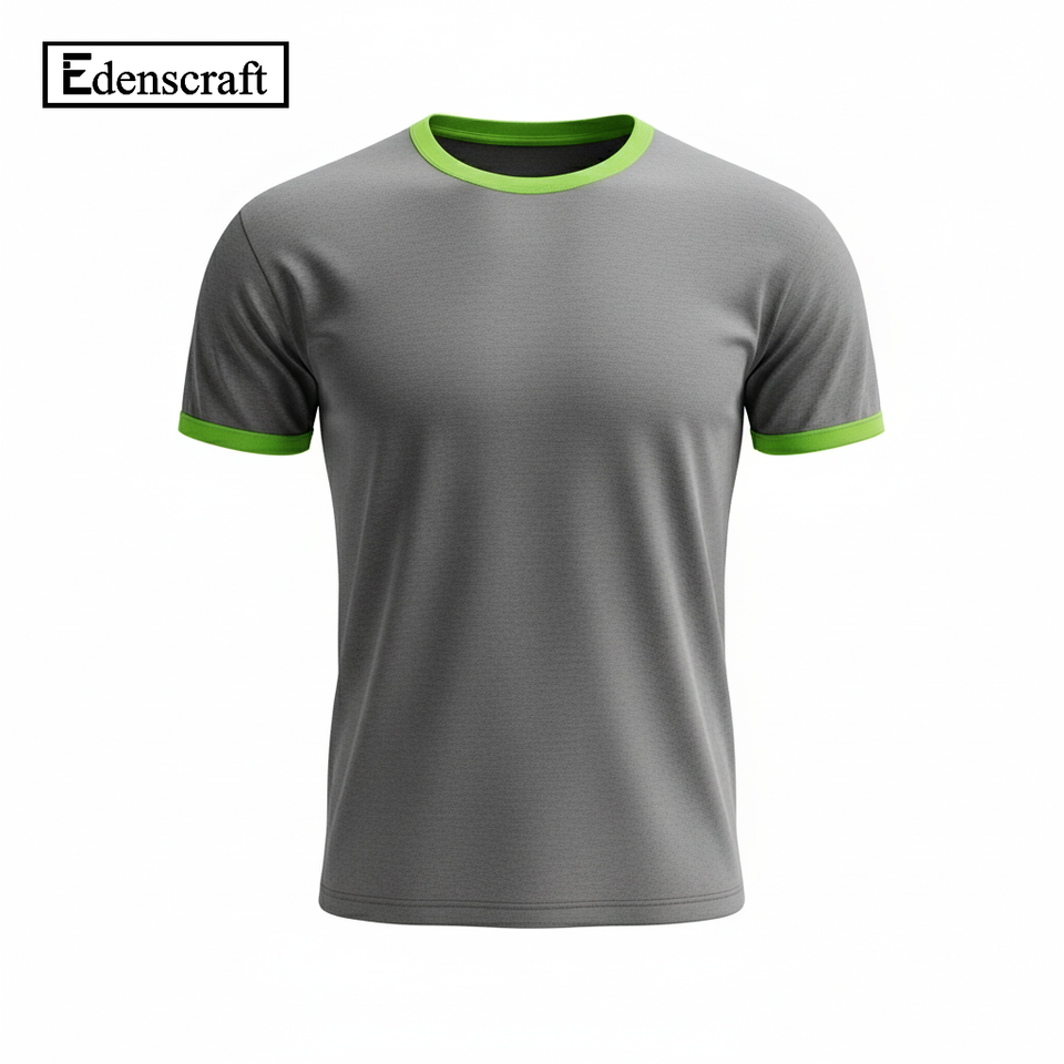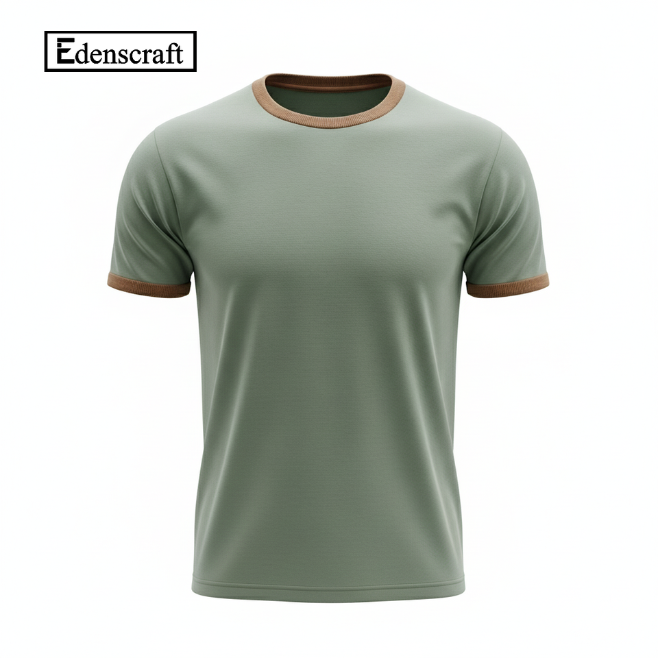 Custom Men's Formal Short Sleeve Crew Neck Ringer T-Shirt Solid Blank Anti-Wrinkle 100% Cotton Wholesale Bangladesh Bulk OEM