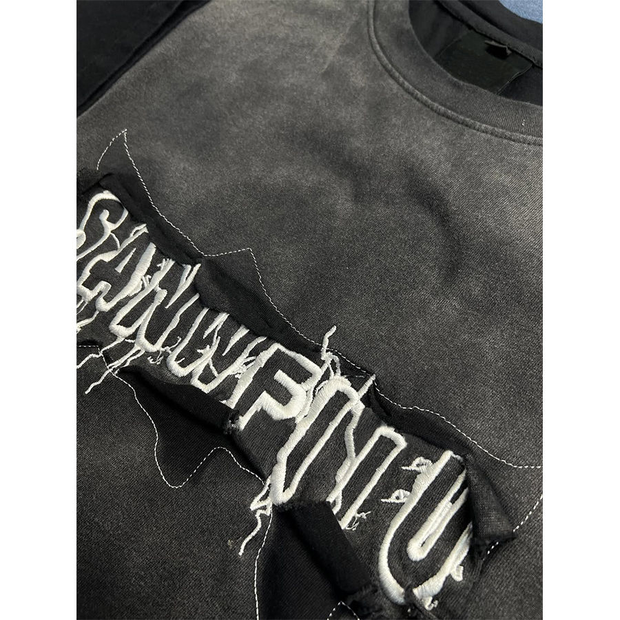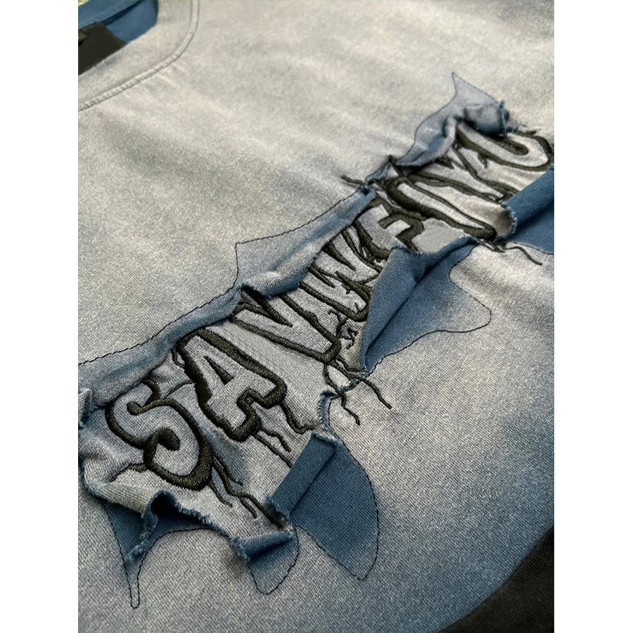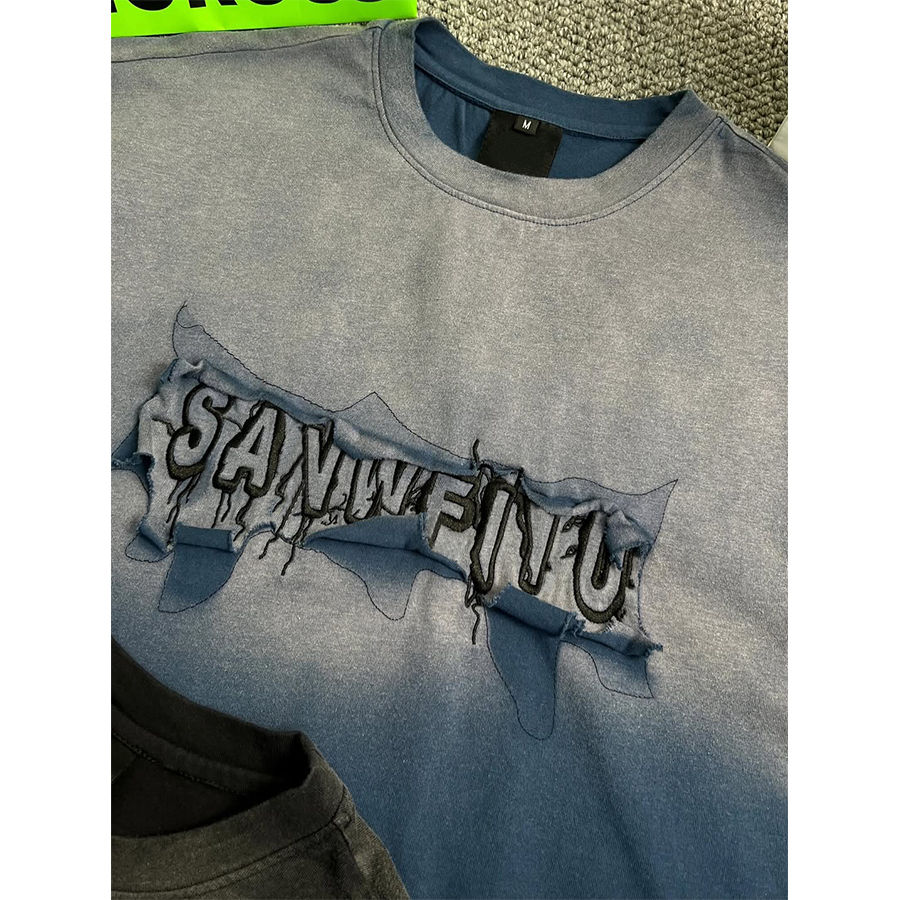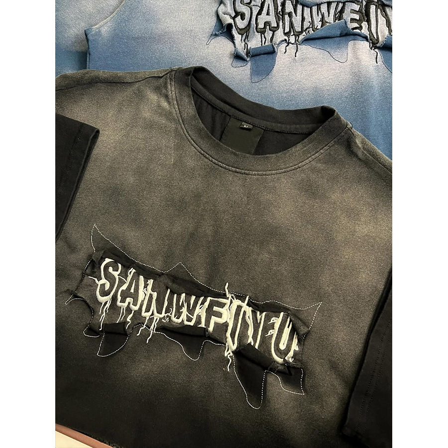 Custom Men's 100% Cotton Gradient Wash Patchwork T-Shirt Embroidery Streetwear Style High Quality Eco-Friendly Breathable-OEM