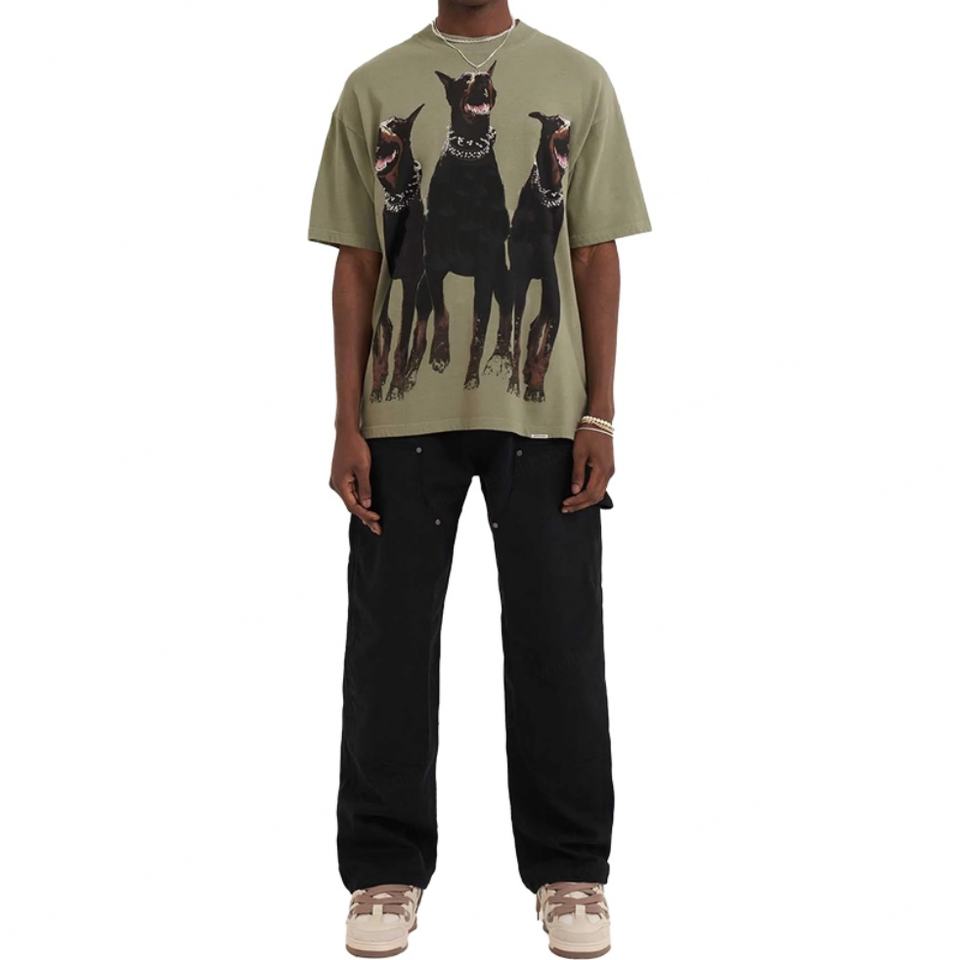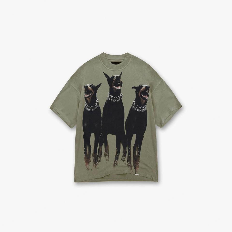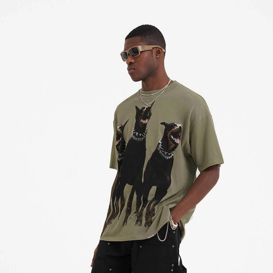 Custom Men's Graphic Screen Print Jersey Vintage Over-sized Ribbed Crew-neck Collar Heavy Cotton Dog T-Shirts