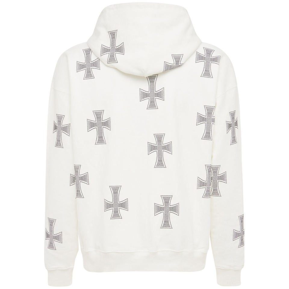 Custom Men's Heavyweight 100% Cotton Oversize Pullover Hoodie Sweatshirt Rhinestone Detail Cut Sew Design for Winter Digital