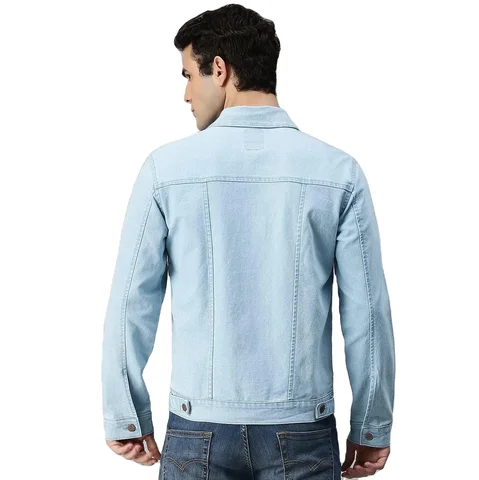 Custom Men's High Quality Denim Jacket Long Stand Collar Front Logo Casual Winter Jacket