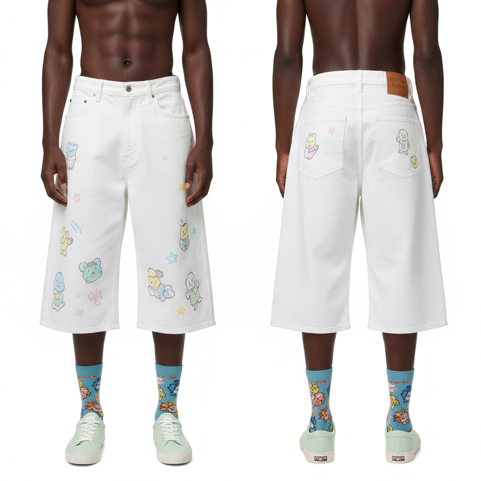 Custom Men's High Waist Summer Denim Shorts Hip Hop Streetwear Style Denim Loose Fit Denim Jorts 2026
