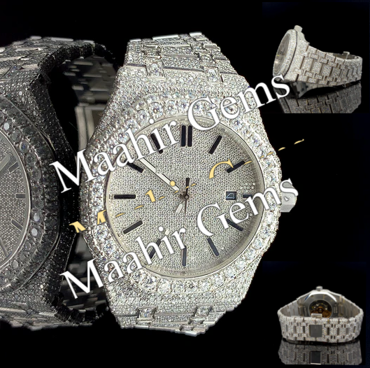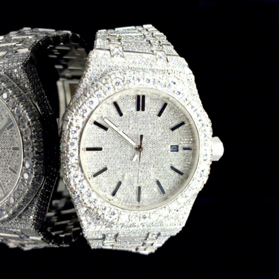 Custom Men's Hip Hop Mechanical Watch Handmade Bling Bling Stainless Steel Moissanite Bracelet Clasp 10 Bar Water Watch